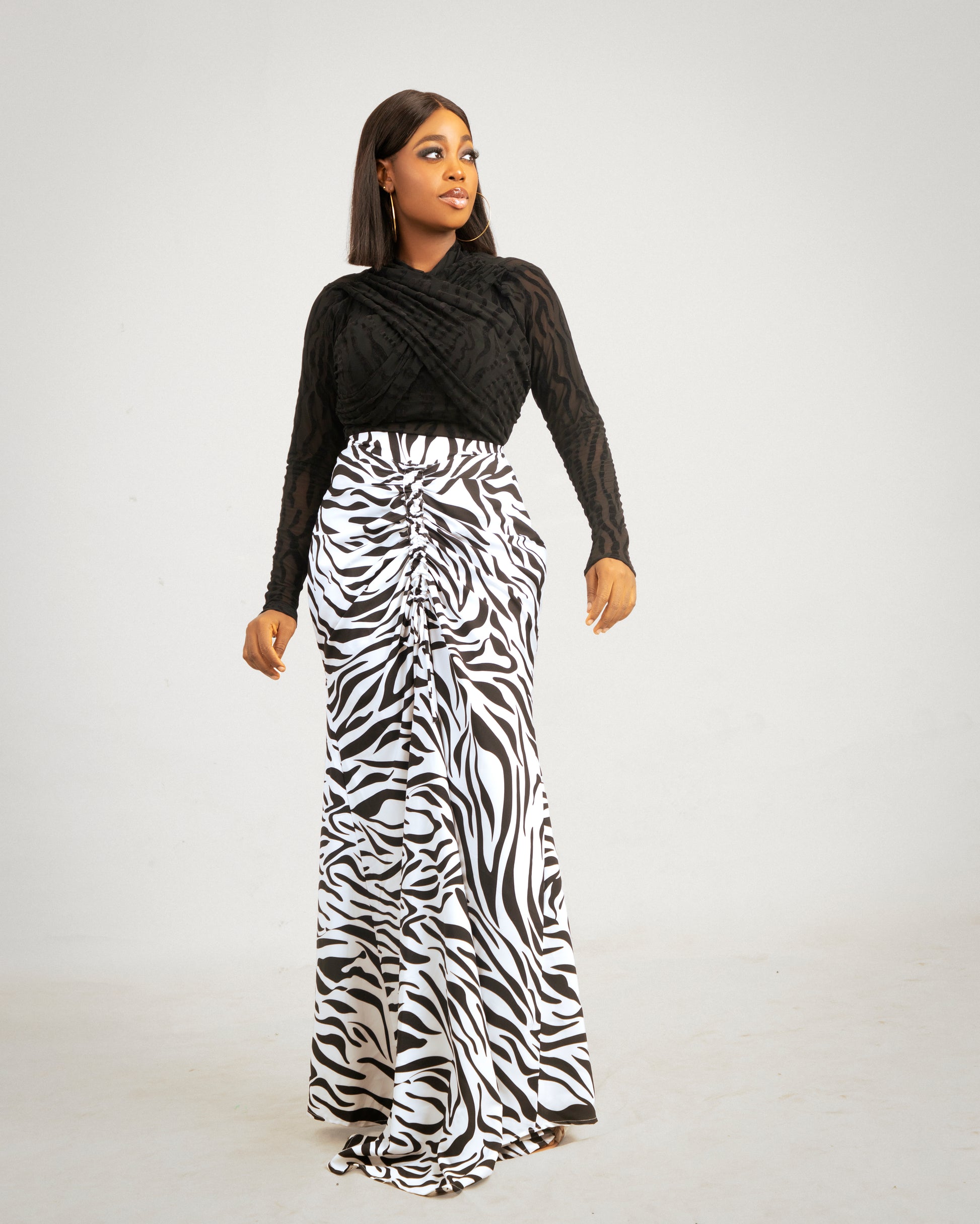 Discover π©πβ―πππΆ Luxe Set, the ultimate combination of style and comfort. Featuring a black mesh patterned design top with a velvet touch and a classy drawstring skirt. ThisΒ outfit is perfect for any occasion. Stay effortlessly chic with this black and white ensemble.