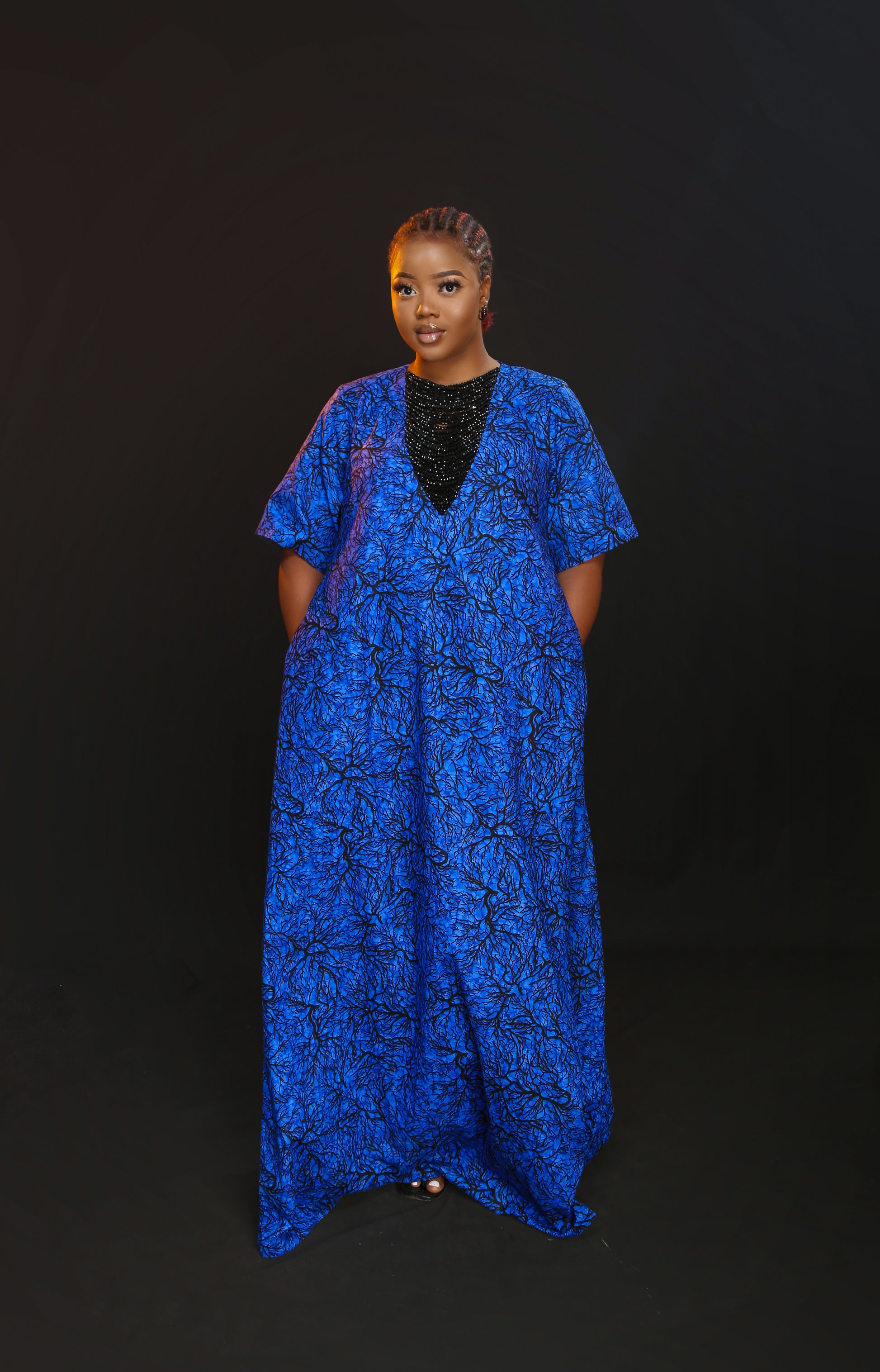 Elevate your wardrobe with the Azaria Beaded Dress. Crafted of luxurious Ankara fabric, this chic dress features a layer of luxe crystal beads that glimmer and sparkle with each step. Perfect for a special occasion, this timeless piece exudes sophistication.