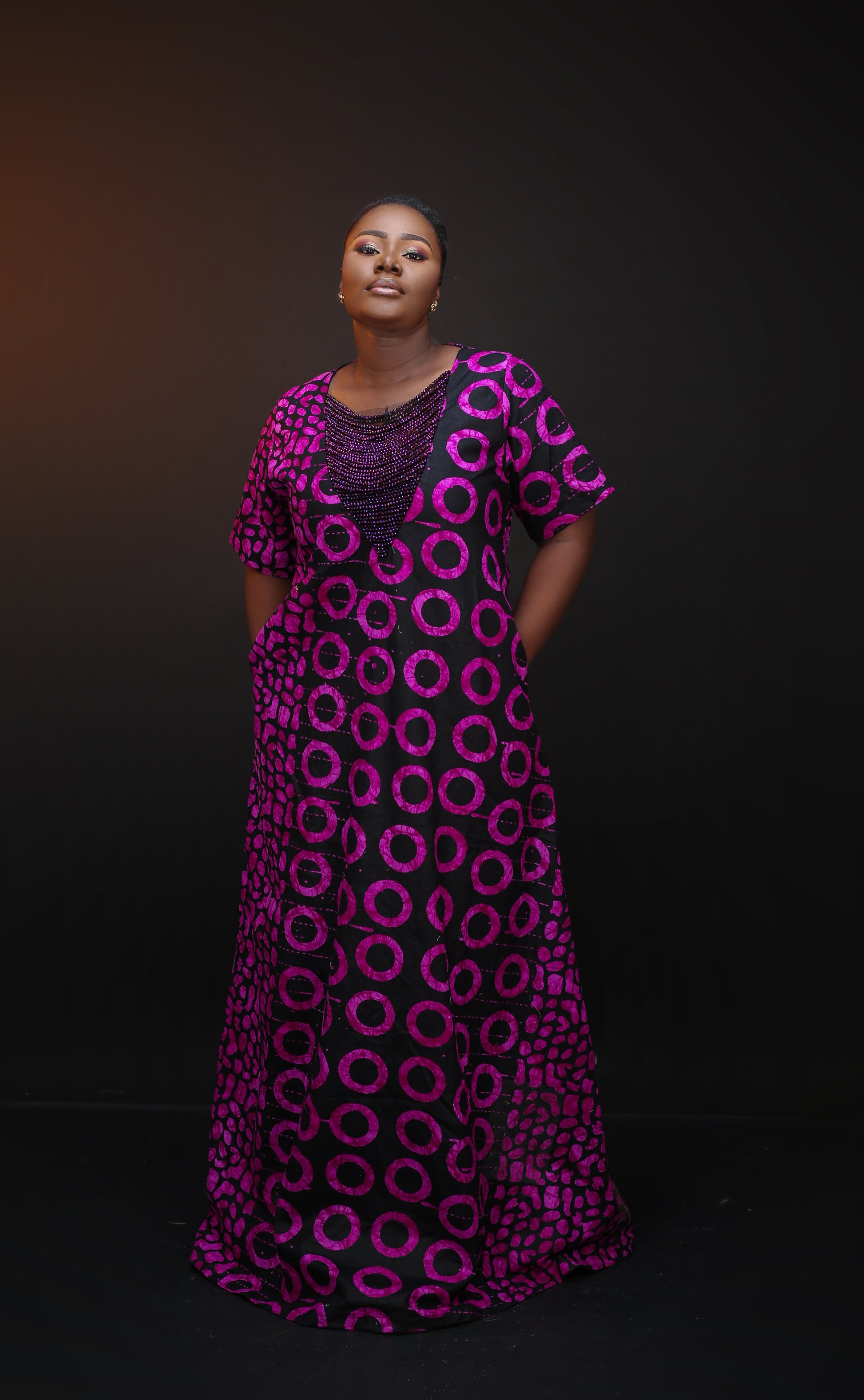 Indulge in luxe African culture with the Azaria in Pink dress. Crafted with Ankara fabric and shimmering beads, this piece of art adds elegance and sophistication to your wardrobe. Its long silhouette reveals a regal aesthetic, making it a perfect choice for any special occasion.