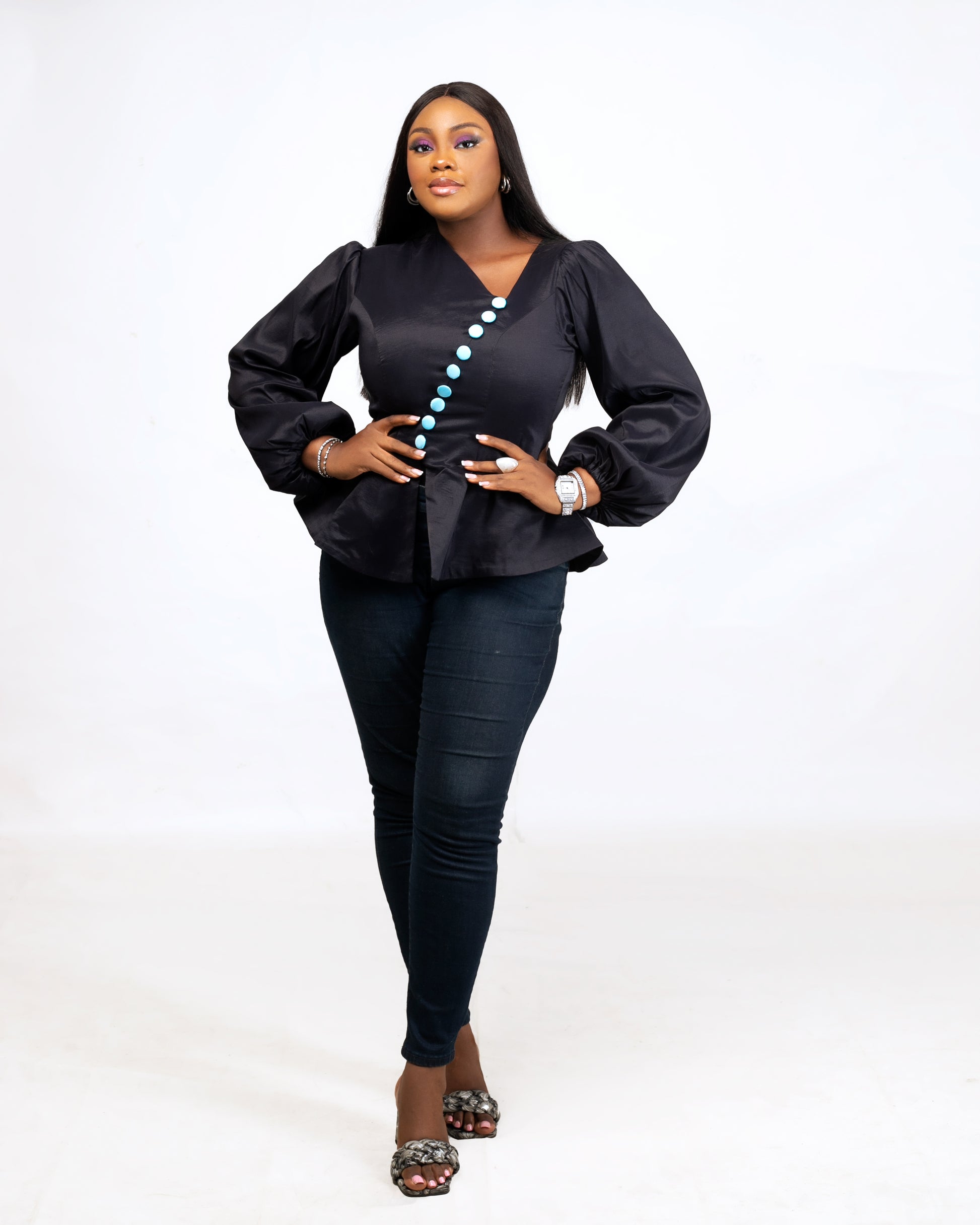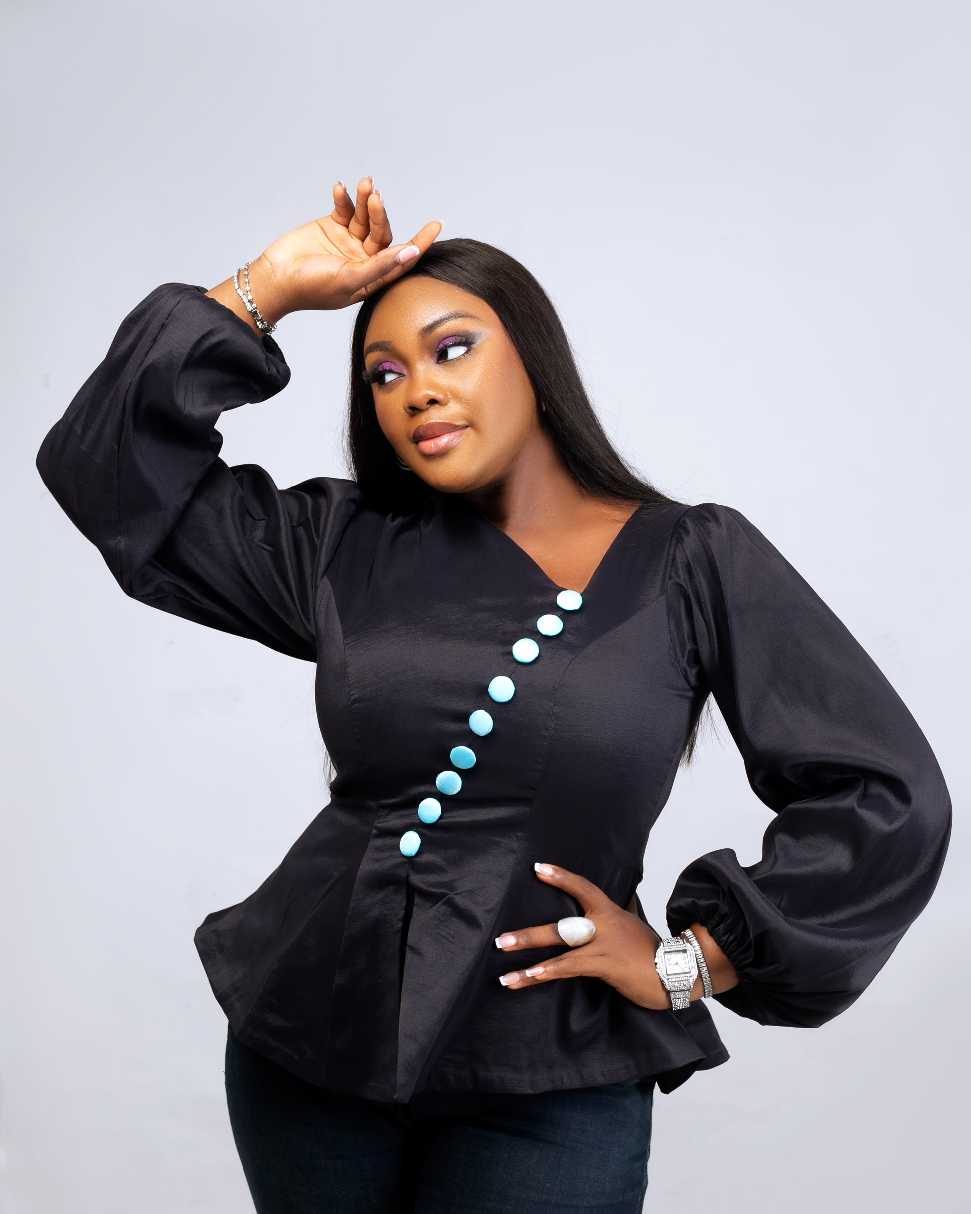 Introducing the Bella Regal Top, the perfect blend of elegance and style. This beautiful peplum top is expertly crafted with Taffeta, offering a luxurious and flattering fit. Elevate your wardrobe with this timeless piece, perfect for any occasion.
