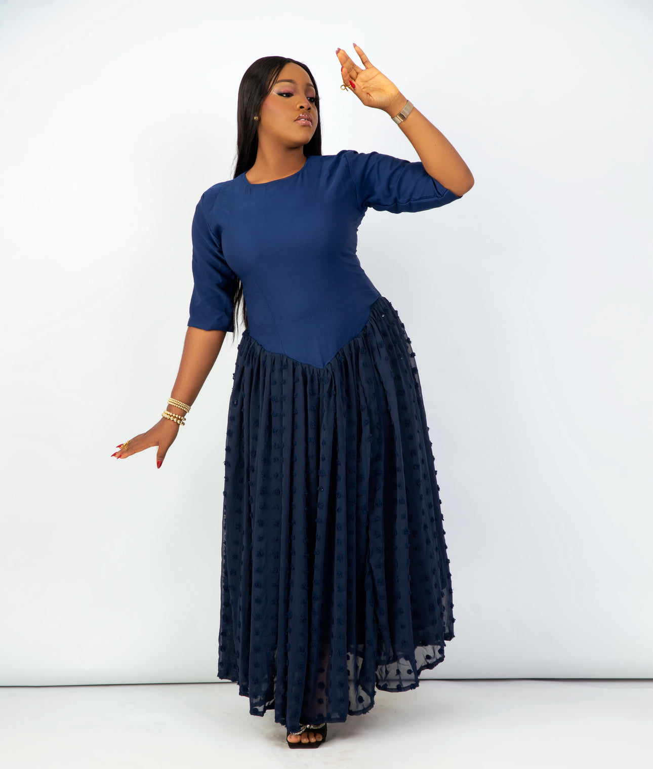 Featuring a blend of crepe and chiffon with stunning design details, the Ella Midi offers a unique and stylish option for any occasion. The lightweight fabrics provide a comfortable fit while the intricate designs add a touch of elegance. Perfect for those seeking a fashionable and chic look.