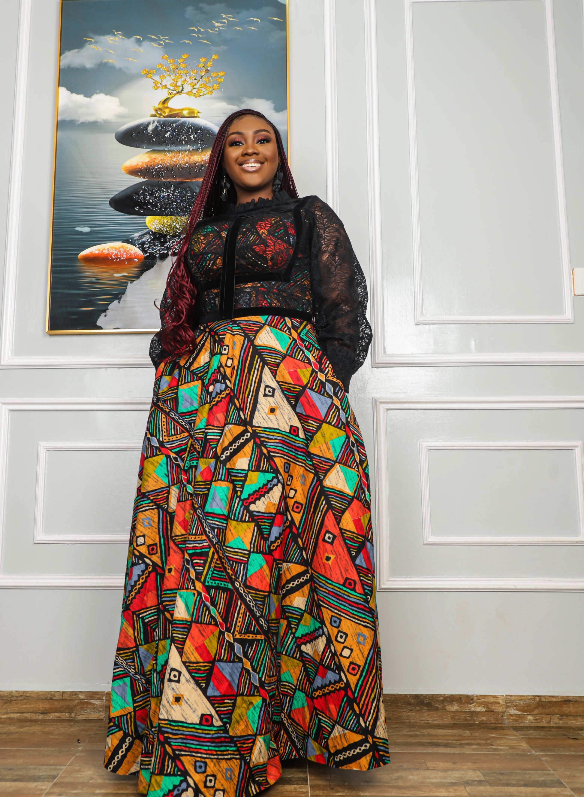 The Ewa Corset Dress is an elegant piece of clothing crafted from lace details and ankara prints. This dress features a corset design and an in-built bra, ensuring maximum comfort and support for any activity. Stylish and functional, this dress is perfect for special occasions.