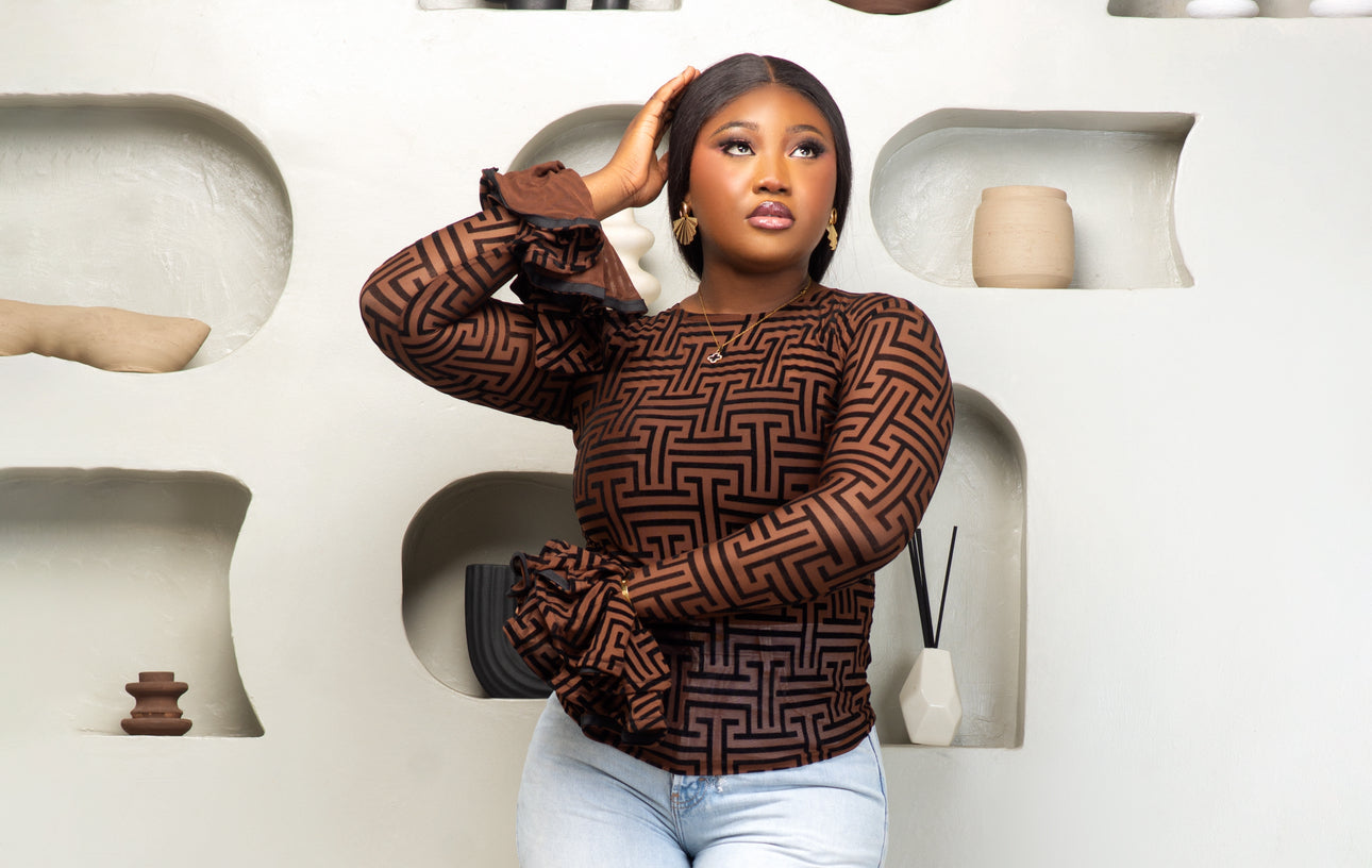 Upgrade your wardrobe with our Gigi Top in Brown. This versatile top features a stunning brown and black color combination and elegant double layer flare sleeve detail. Perfect for any occasion, this top can easily be dressed up or down. Elevate your style with Gigi.