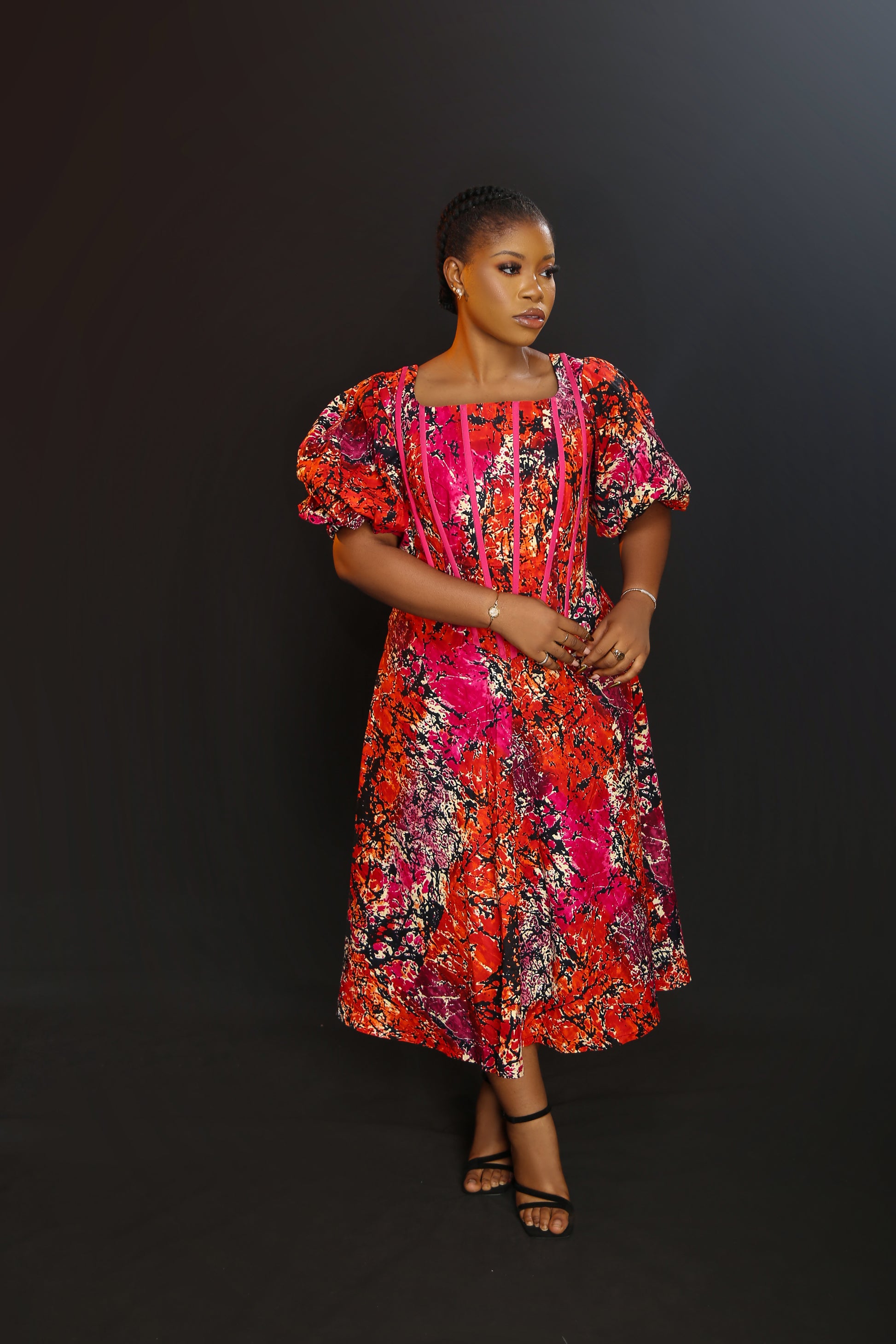 Make a statement in the Kejâ Corset Dress; a unique, exclusive piece crafted from 100% Cotton and Ankara fabric with a multicultural vibe. The midi length, combined with the cinching corset top and flared skirt, gives you an elegance and sophistication that will have you turning heads. Beautifully crafted and limited edition, it's the perfect choice for any luxury wardrobe.