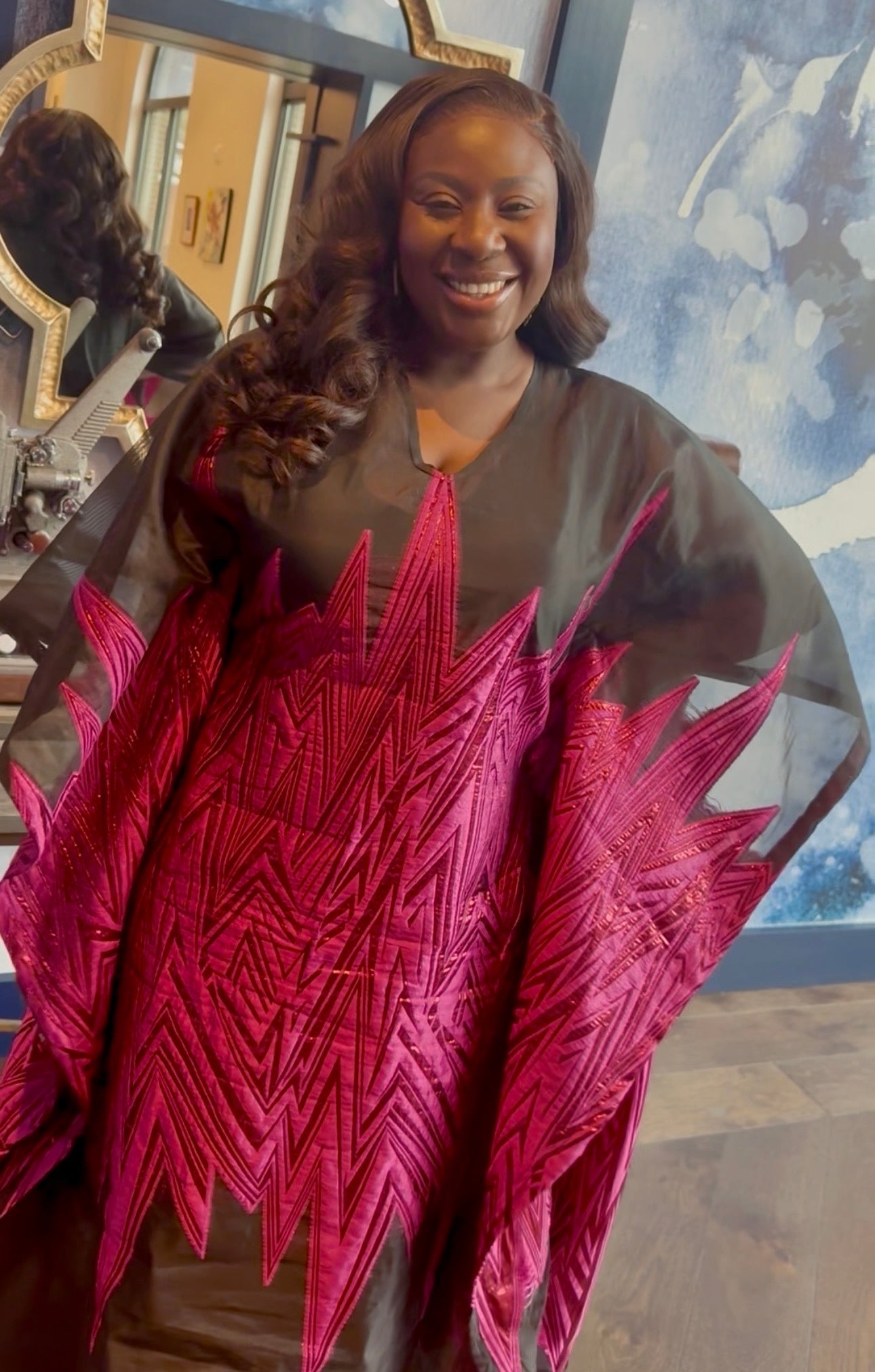 Expertly crafted with organza and brocade fabric, the Kelly Kaftan exudes elegance and sophistication. Its intricate details and stunning combination of black and magenta make it a must-have for any occasion. Elevate your style with this beautiful Bubu and experience the perfect balance of comfort and luxury.