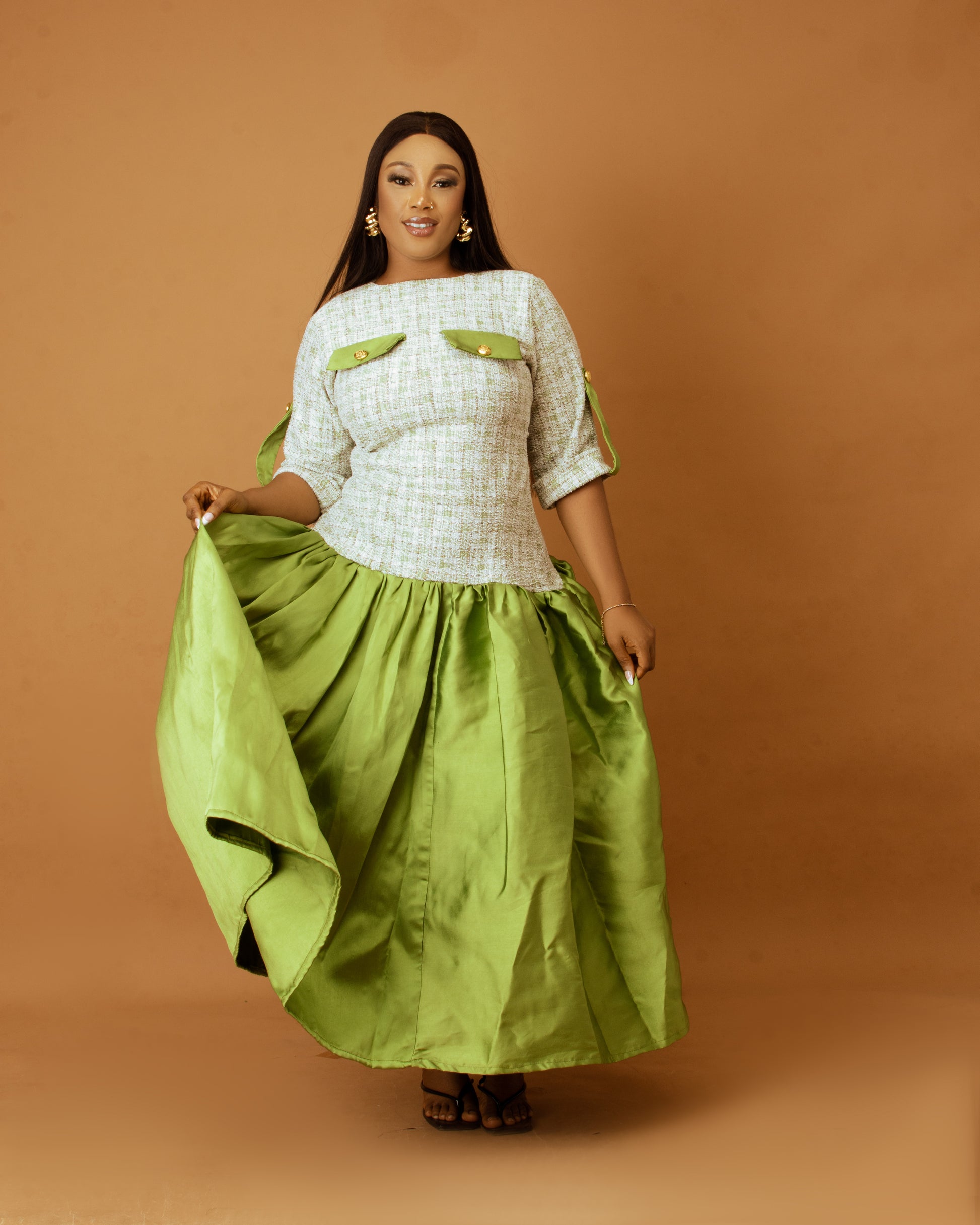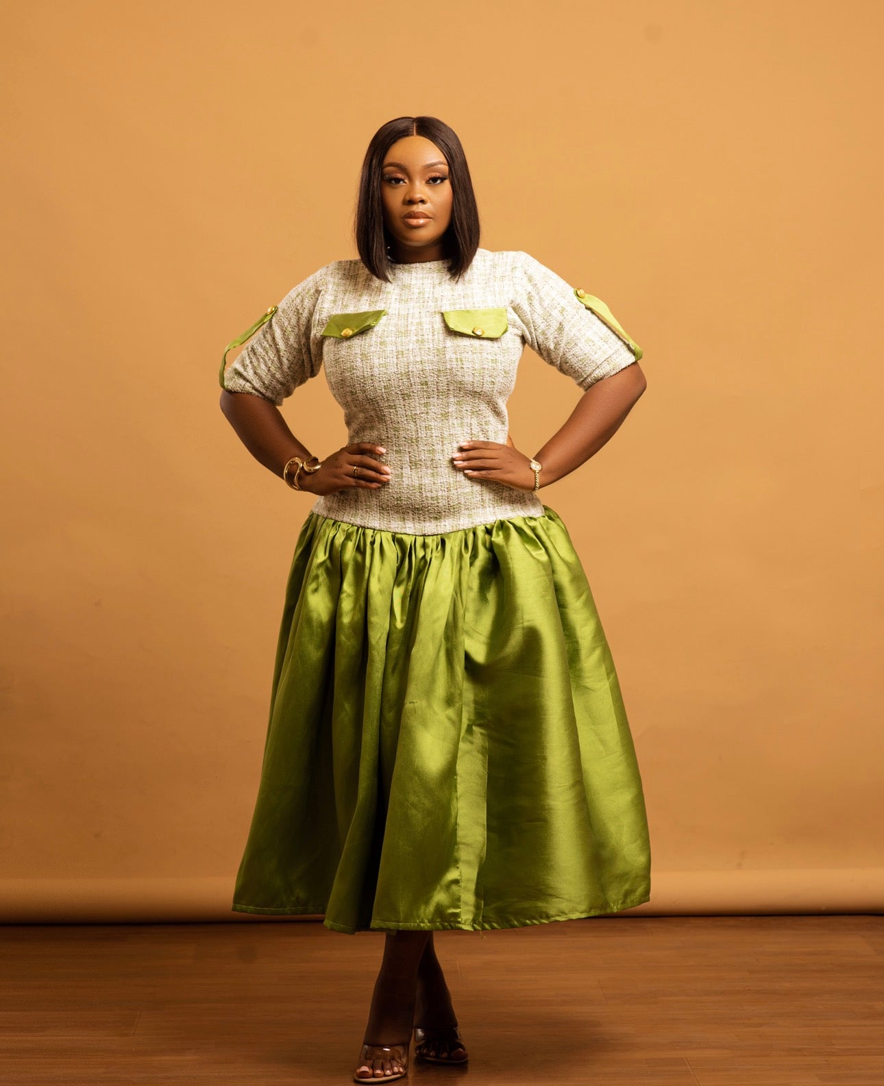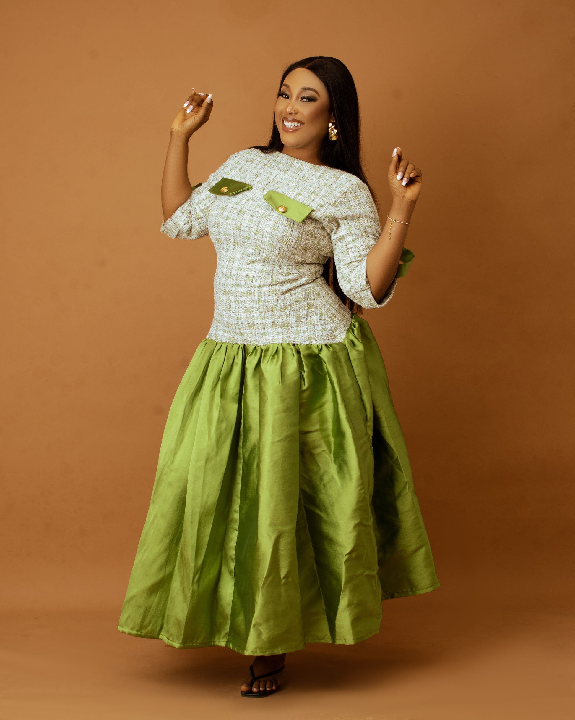 This Kelly Tweed Dress is expertly crafted from a combination of tweed and mikado fabrics, making it a stylish and versatile midi dress. The tweed adds a classic and sophisticated touch, while the mikado brings a modern and sleek element. Perfect for any occasion, this dress is sure to elevate your wardrobe.