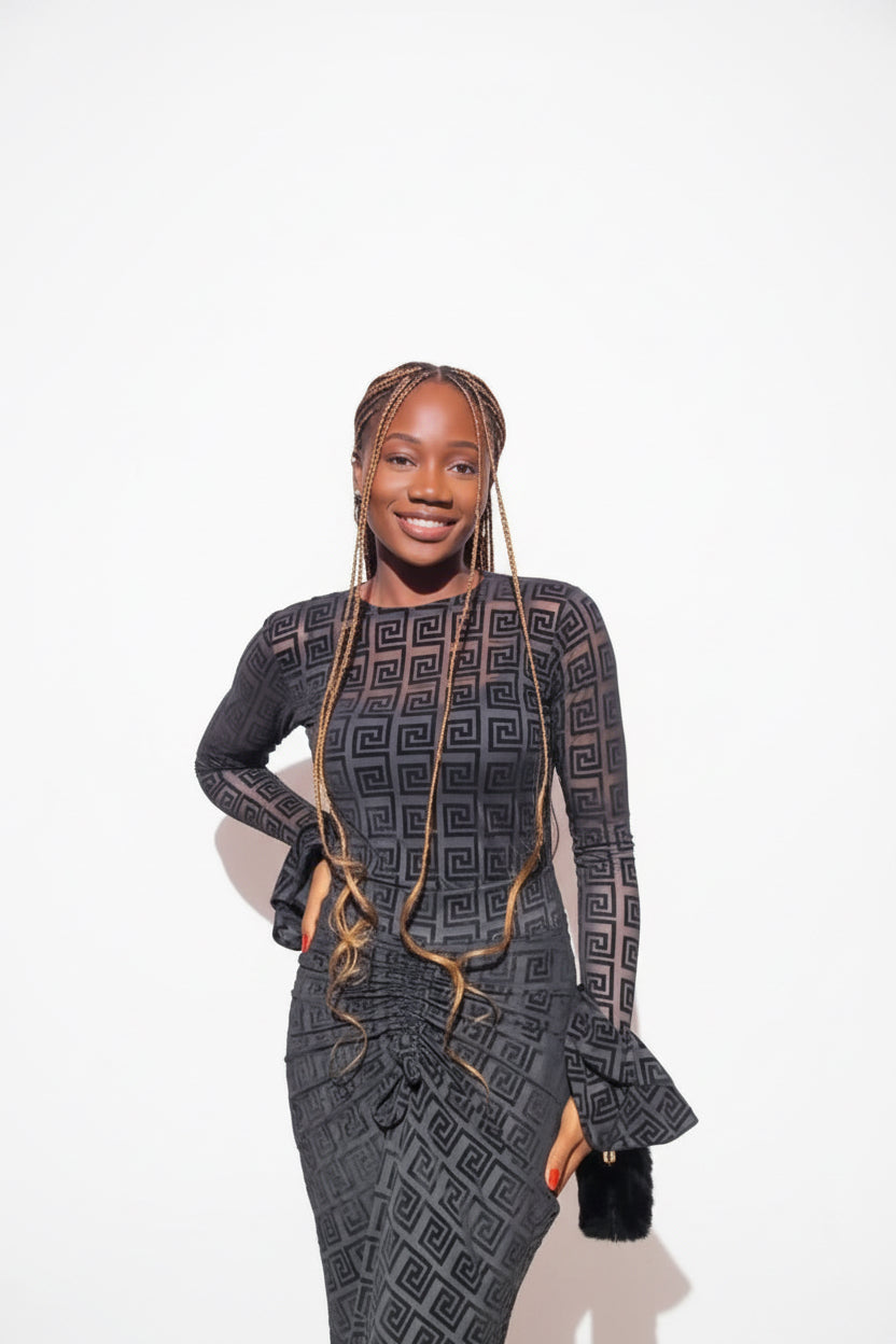 The 𝒩𝓊ℯ𝓁𝓁𝒶 Diva set features a gorgeous , black mesh top and skirt with a drawstring for added style and comfort. Perfect for making a bold statement, this set is a must-have for any fashion-forward diva. The lightweight and stretchy material ensures a flattering fit, making you feel confident and stylish. Upgrade your wardrobe with this stunning set!