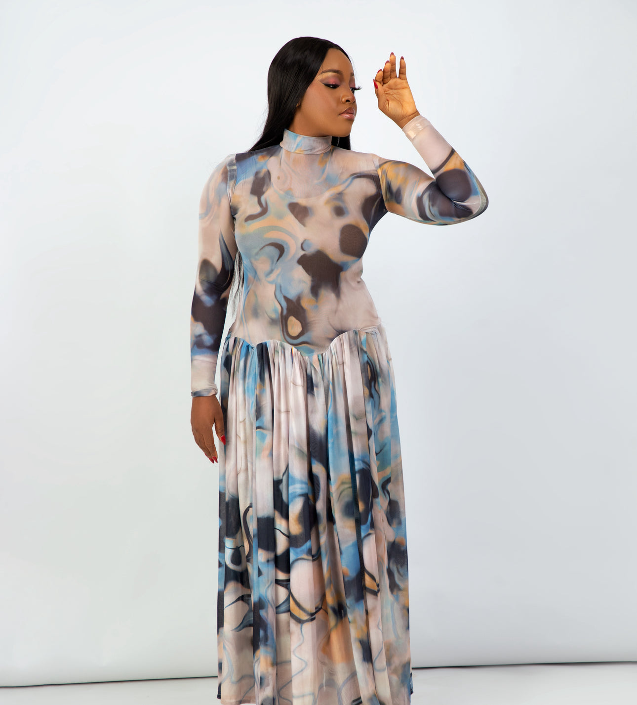 Introducing Nuella in Nude and Powder Blue, the perfect blend of elegance and charm. Designed with a beautiful turtle neck mesh and delicate scallop pleated detailing, this dress is sure to turn heads. Elevate your style with this timeless piece.