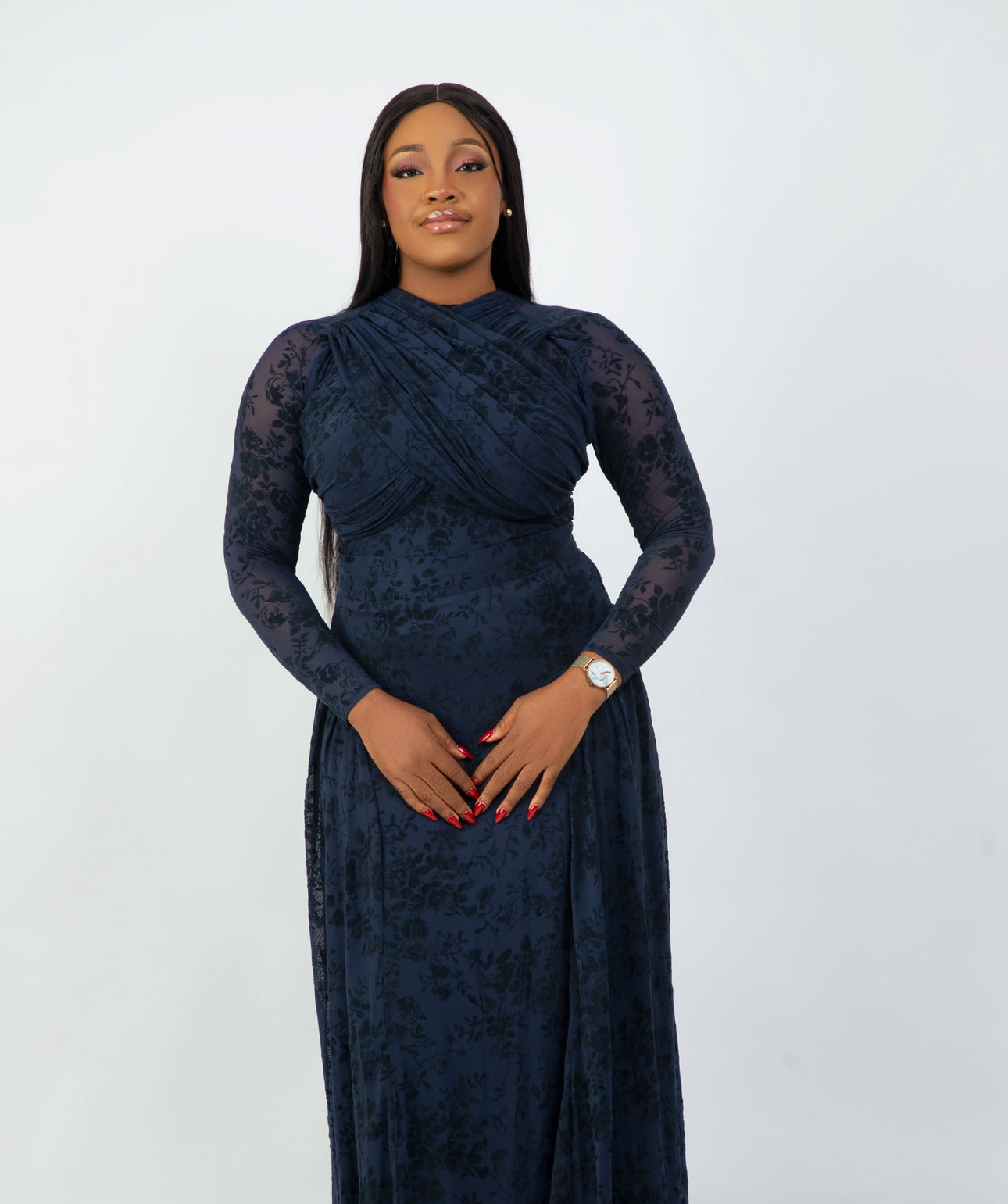 Introducing the Nuella Two Piece in Navy. This elegant ensemble features a patterned top and skirt that beautifully combine for a sophisticated look. Elevate your style with this stunning two piece set.