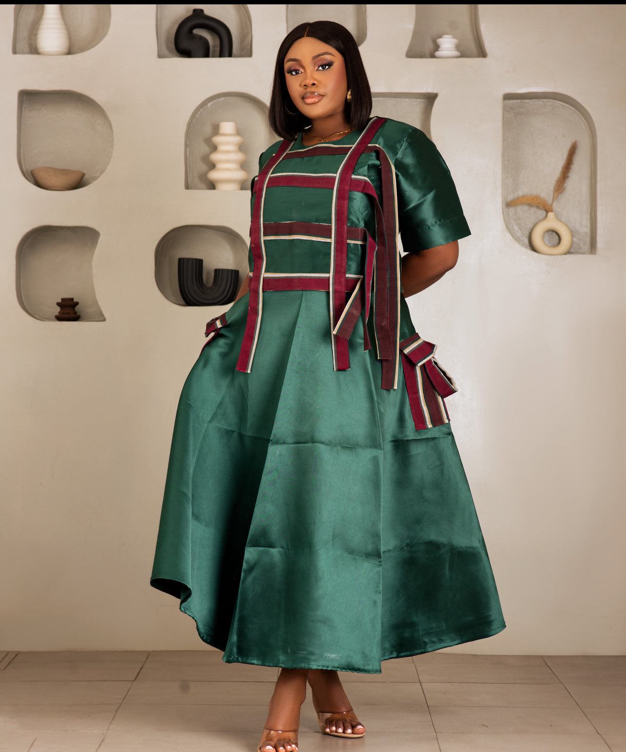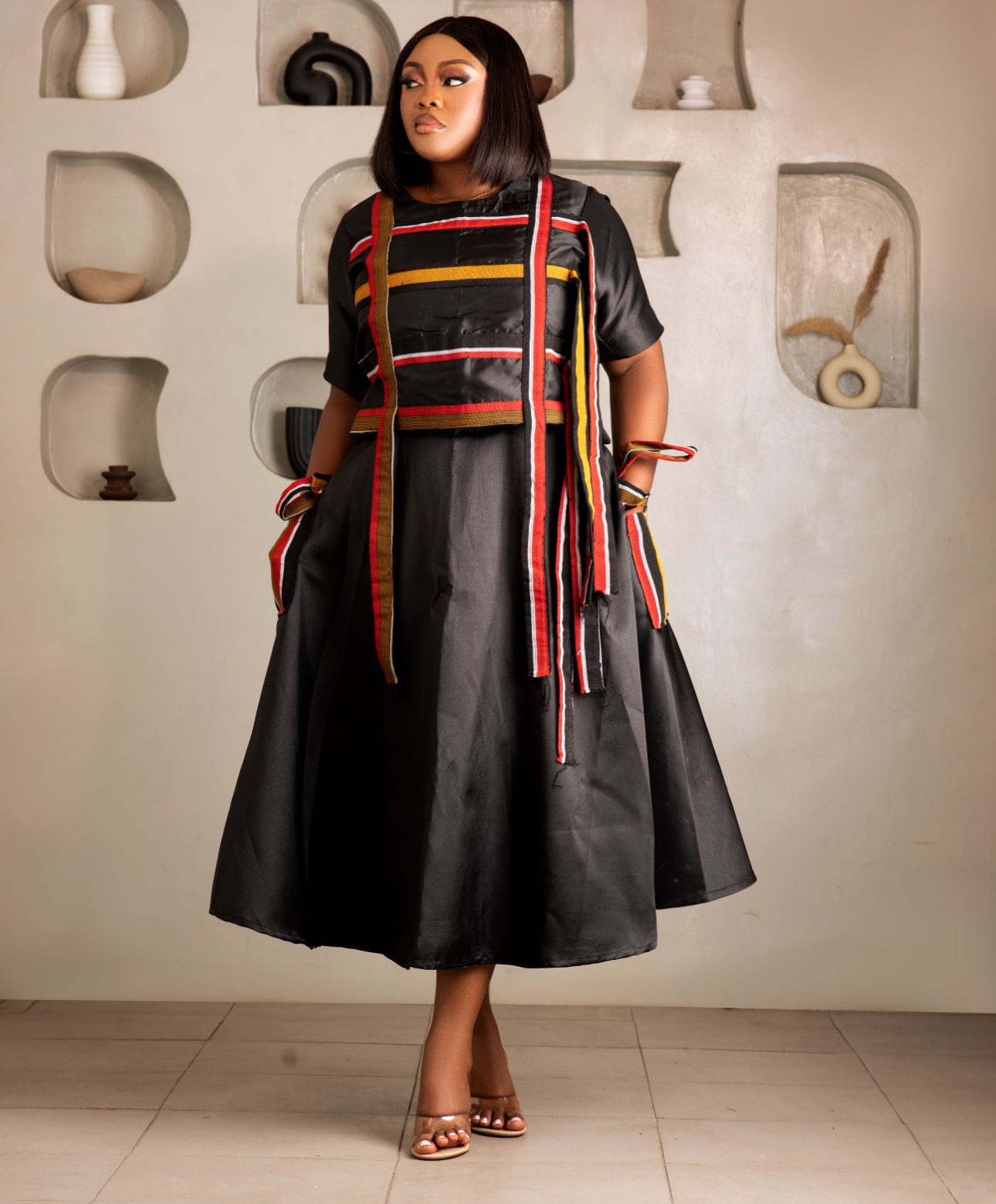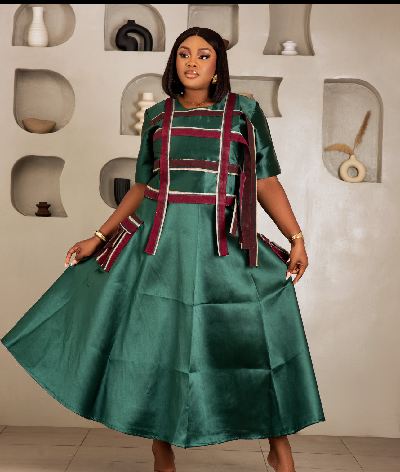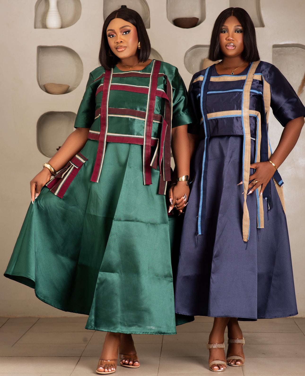 The Aisha Two Piece set is crafted from luxurious mikado fabric and adorned with traditional aso oke designs. Available in a variety of vibrant colors, this set offers both style and cultural flair. Experience the comfort and elegance of this unique ensemble.