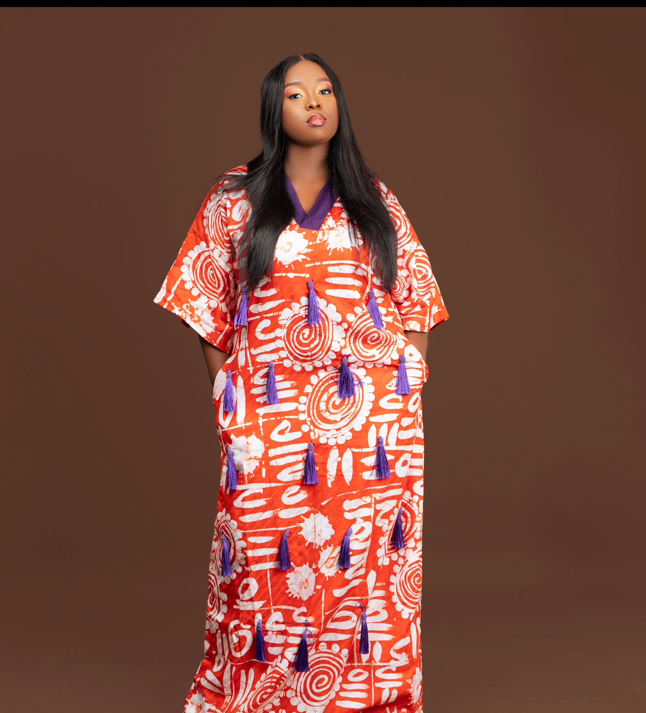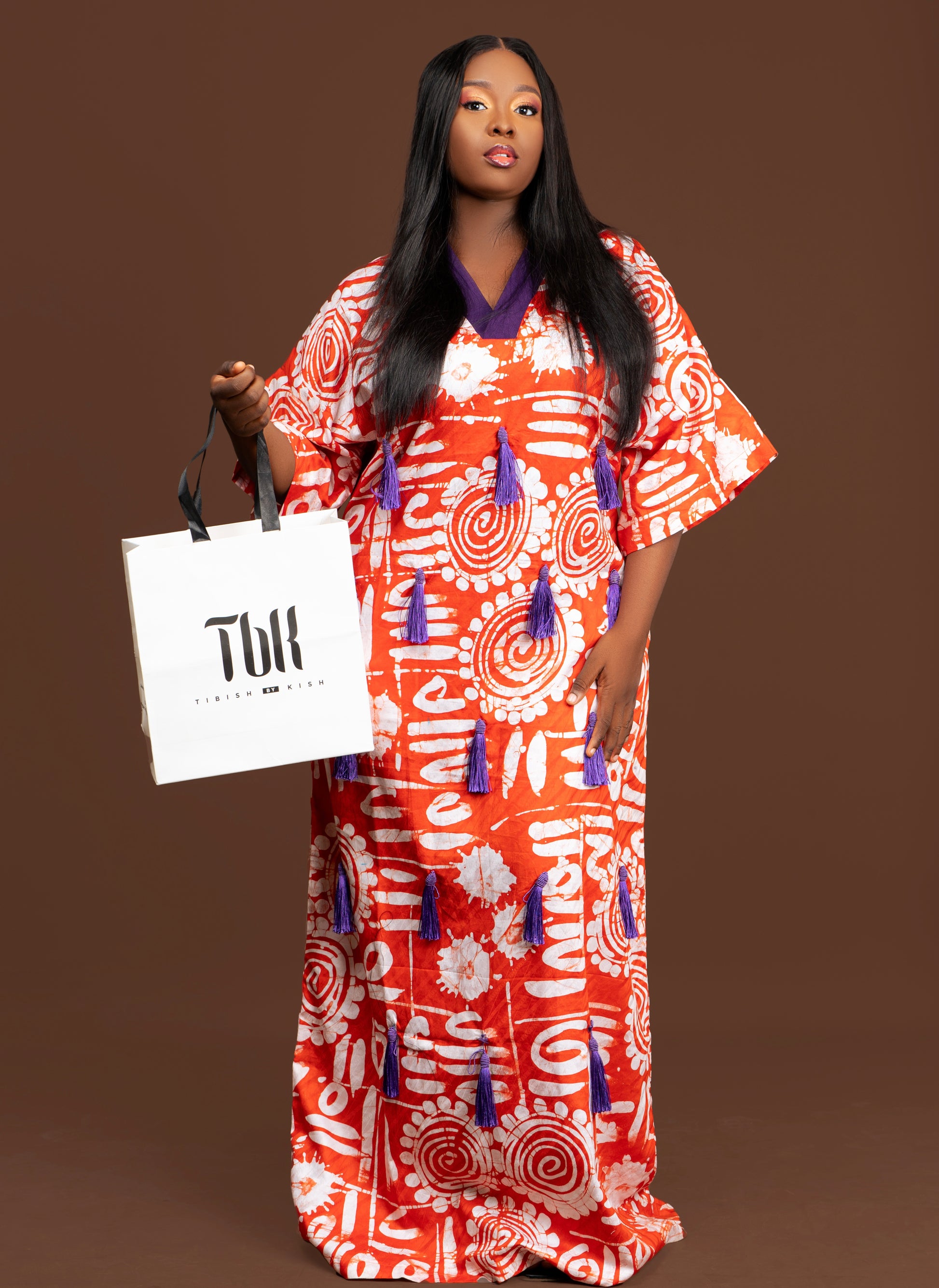 Expertly designed Zahara Tassle Kaftan features beautiful tassles and asooke details. Perfect for adding a touch of sophistication to any outfit. Elevate your style with this stunning Orange kaftan.